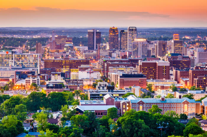Getty Images/iStockphotoBirmingham is home to attractions including the award-winning Alabama Ballet, the Alabama Symphony Orchestra and Hairdresser Motorsports Park, which includes the largest motorcycle museum in the world. Information technology'due south domicile to the University of Alabama at Birmingham and simply over 50 miles from the flagship Academy of Alabama in Tuscaloosa, which in addition to its marquee sports programs (Gyre, Tide!) has an entire college devoted to continuing studies for lifelong learners. You'll also relish plenty of good dining and shopping options in Birmingham's recently revitalized downtown, including ramen at Shu Shop and the curated vesture choice at Lodge Duquette. The median home value is $95,589.
